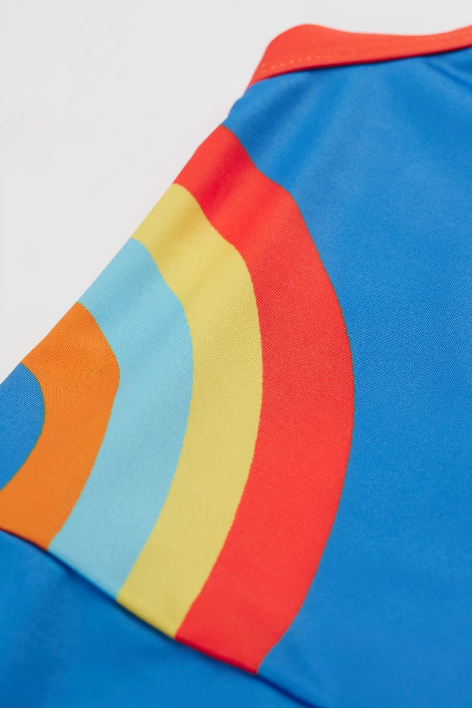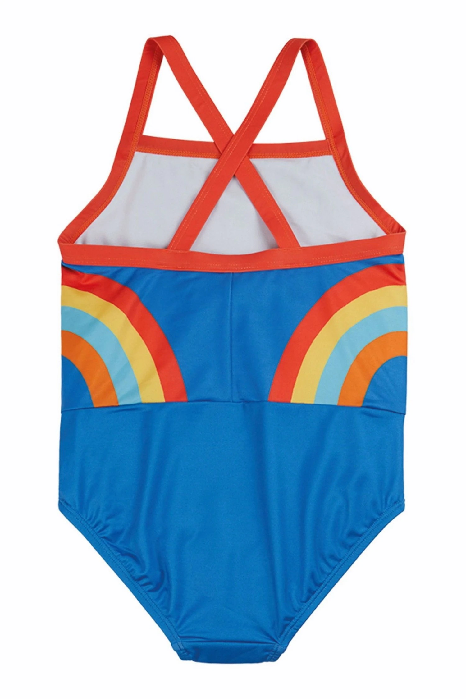 Perfect for rainbow lovers! The Thea Rainbow Swimsuit features cross back detail and includes a soft lining. Made with recycled material that meets UPF 50+ standard.
