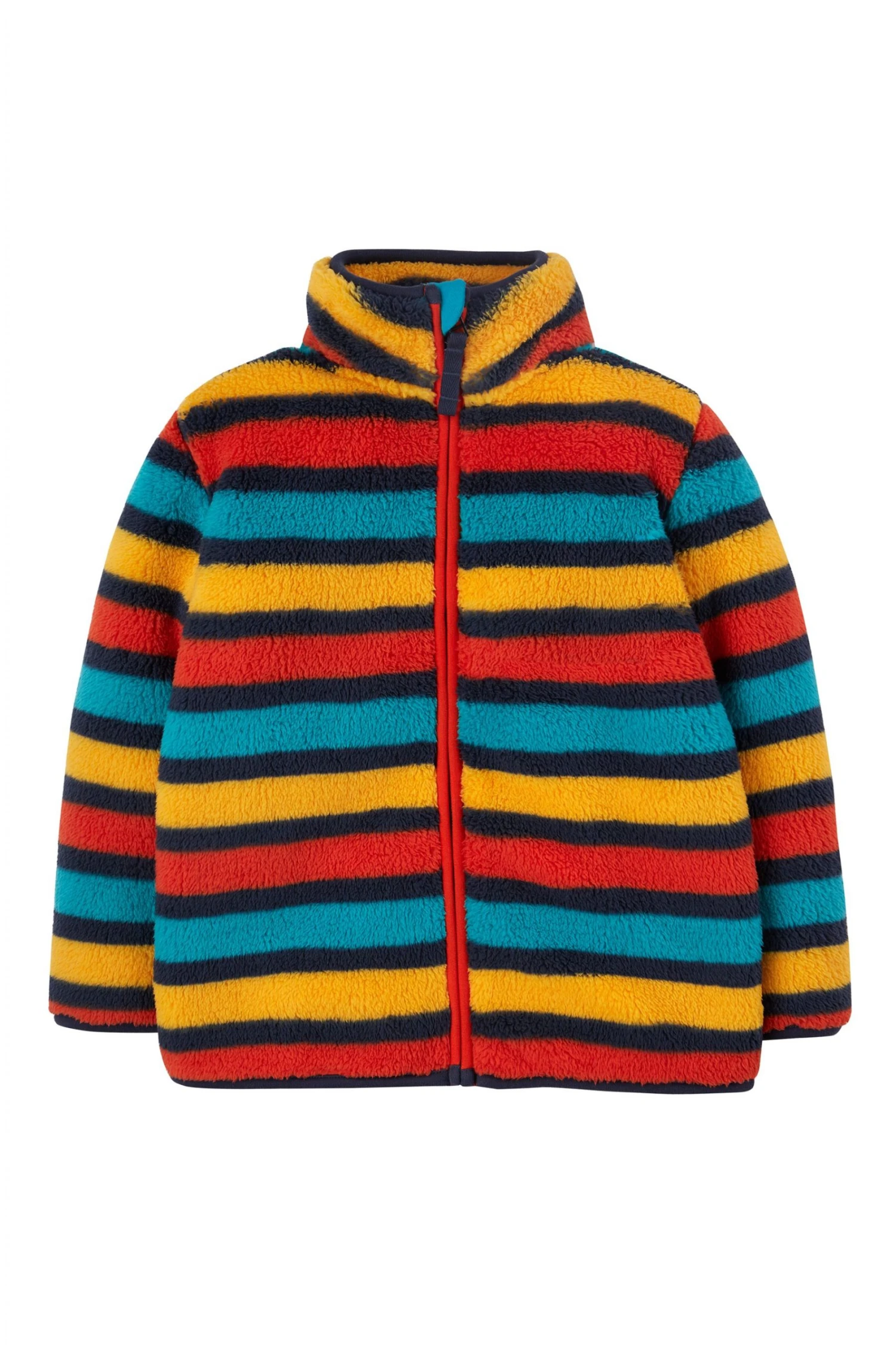 Made from Frugi’s recycled snuggly and warm long pile Ted Fleece, this is a long sleeved zip through top with chest pocket detail. Features raised collar for extra warmth and protection, great for mid layering.