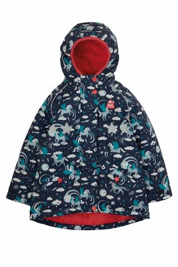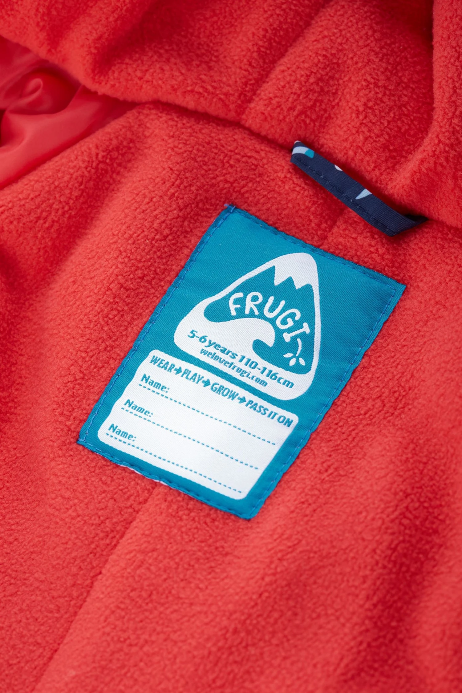 A super cosy coat with waterproof taped seams; warm wadding and soft fleece lining. Made with recycled plastic bottles, it features a durable PFC free water repellent finish, reflective detail for safety, adjustable cuffs and waist, as well as fleece lined hand warmer pockets. Zip closure with outer storm flap and chin guard.