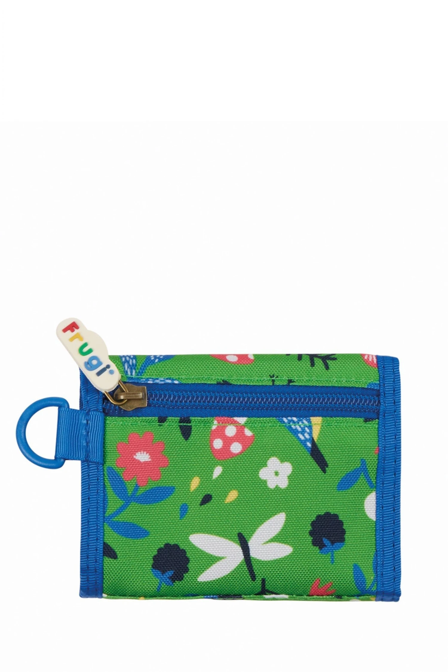 Made from recycled material. Features outer zipped pocket with Frugi cloud zip pull, D-ring which interacts with a clip in the Frugi Adventurer Backpack. Internal features: large zipped internal pocket and multiple card pockets.