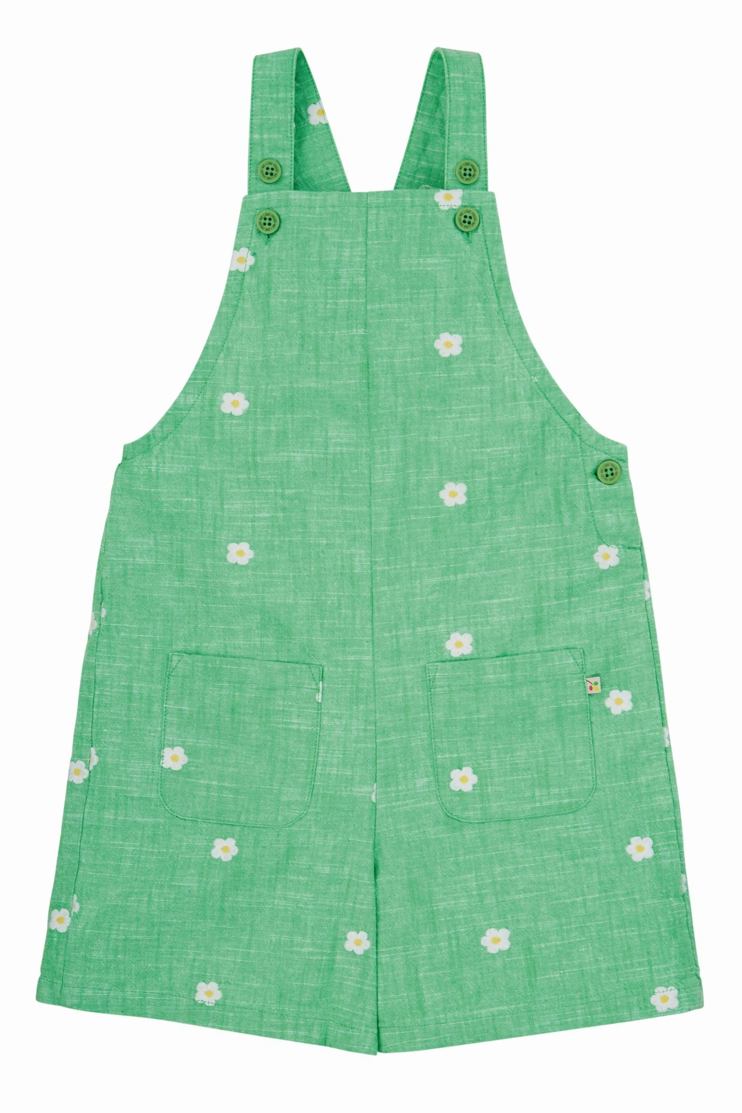 A great style for Summer days out. This pretty organic slub chambray dungaree features all over daisy embroidery detail. Adjustable button shoulder straps ensure a comfortable fit and two patch pockets at the front are perfect for storing little treasures!