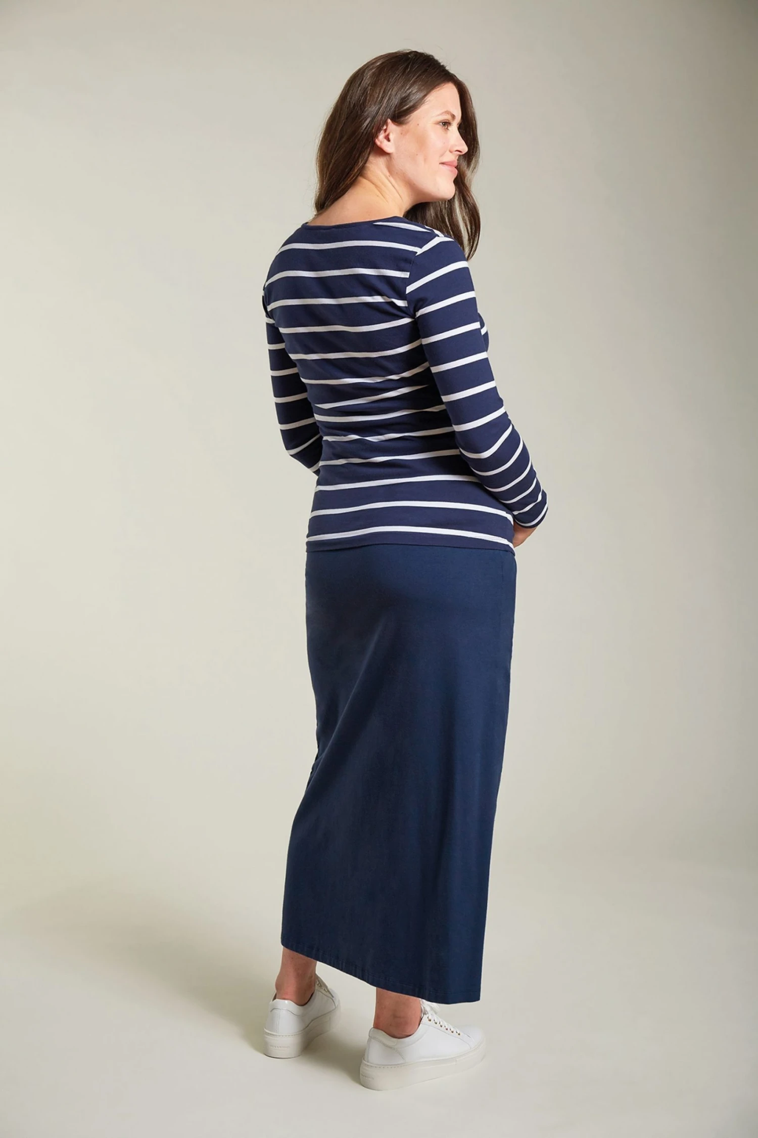 Frugi Maternity Organic Navy Blue Stripe Long Sleeve Top
