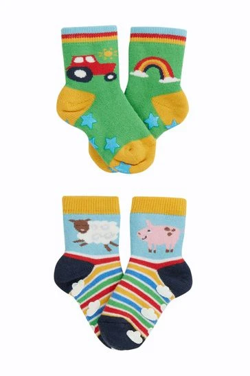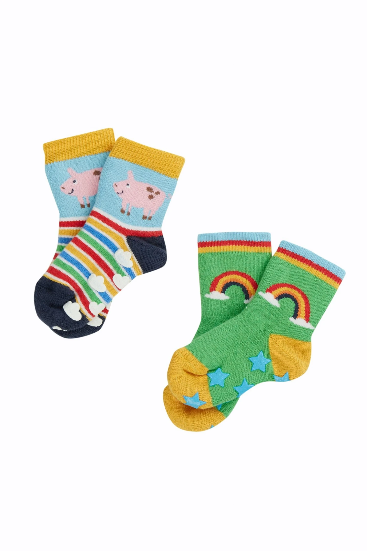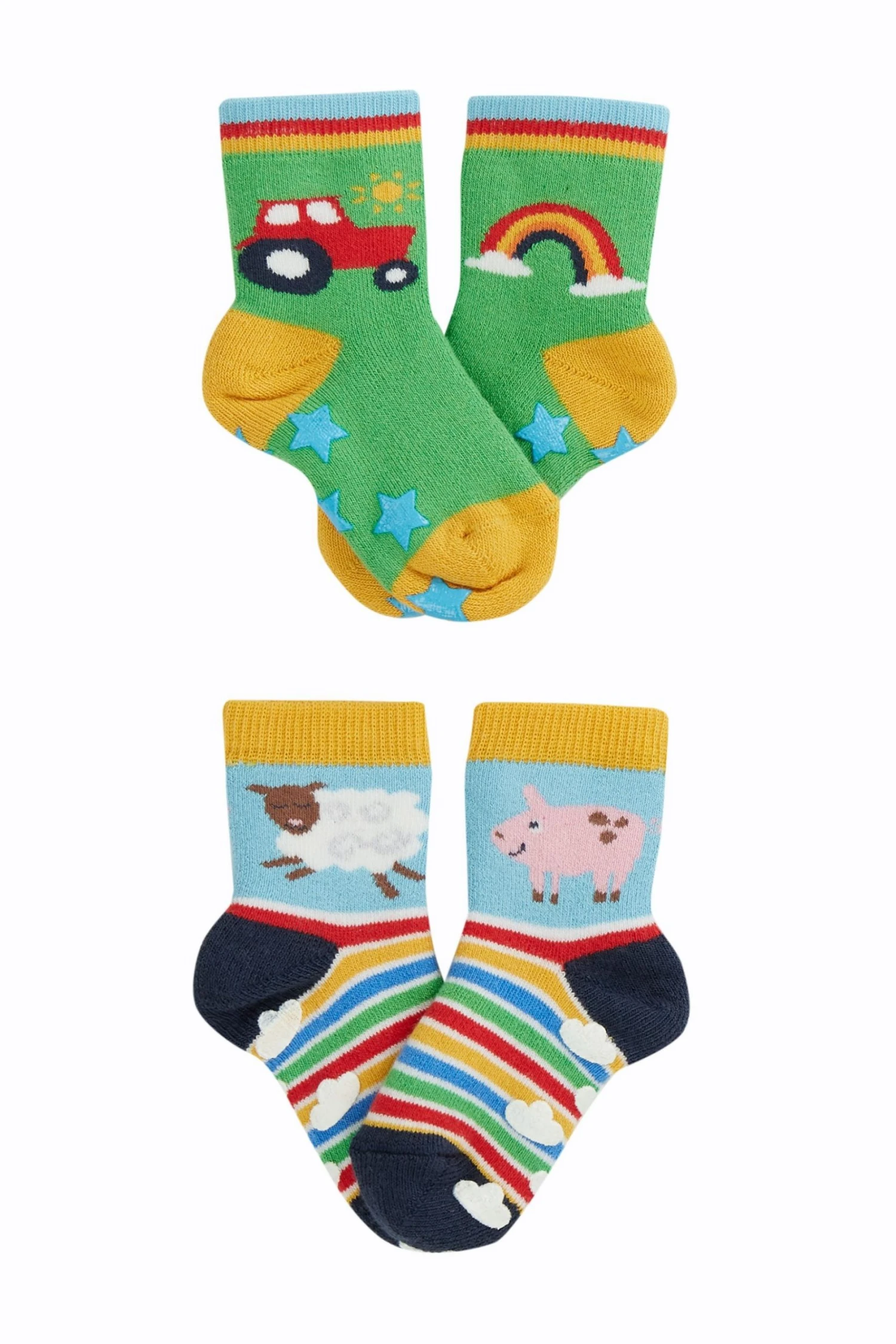 Don’t let these slip away! Super cute non-slip pimpled sole grippy socks from Frugi, crafted from soft cotton! A two pack for value!