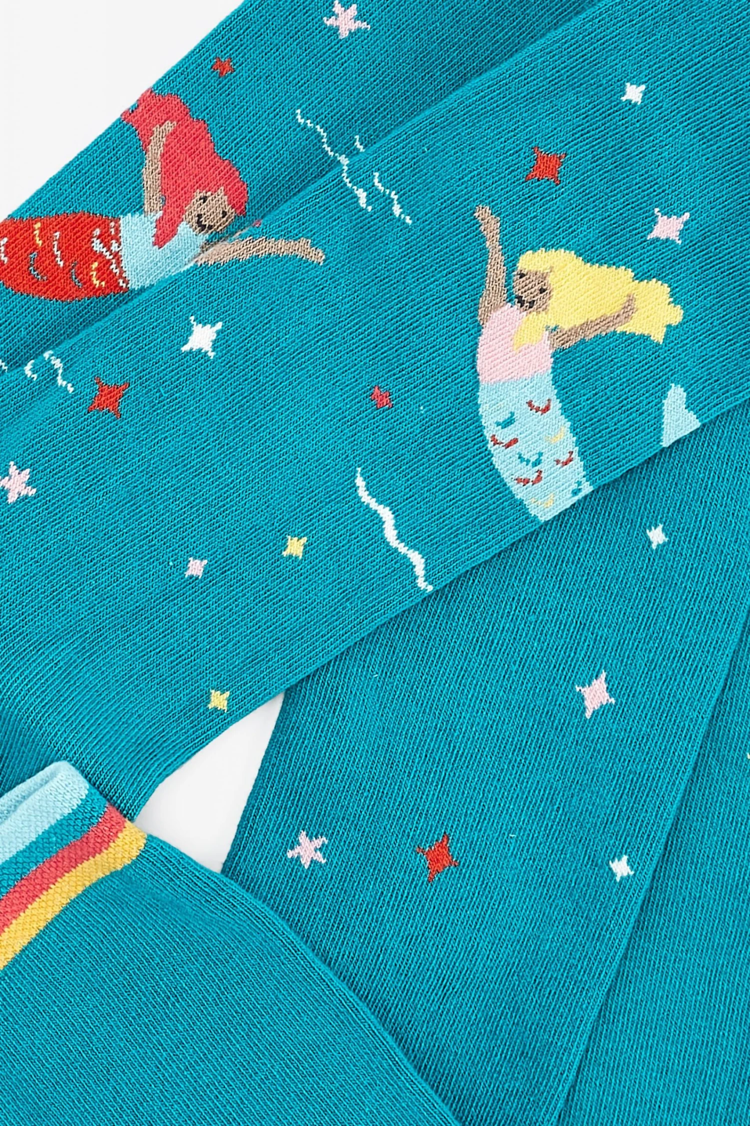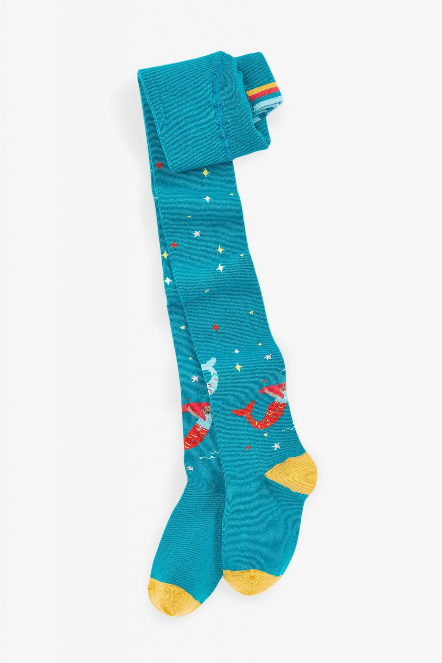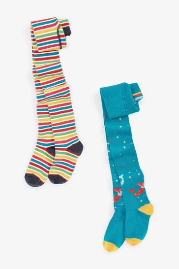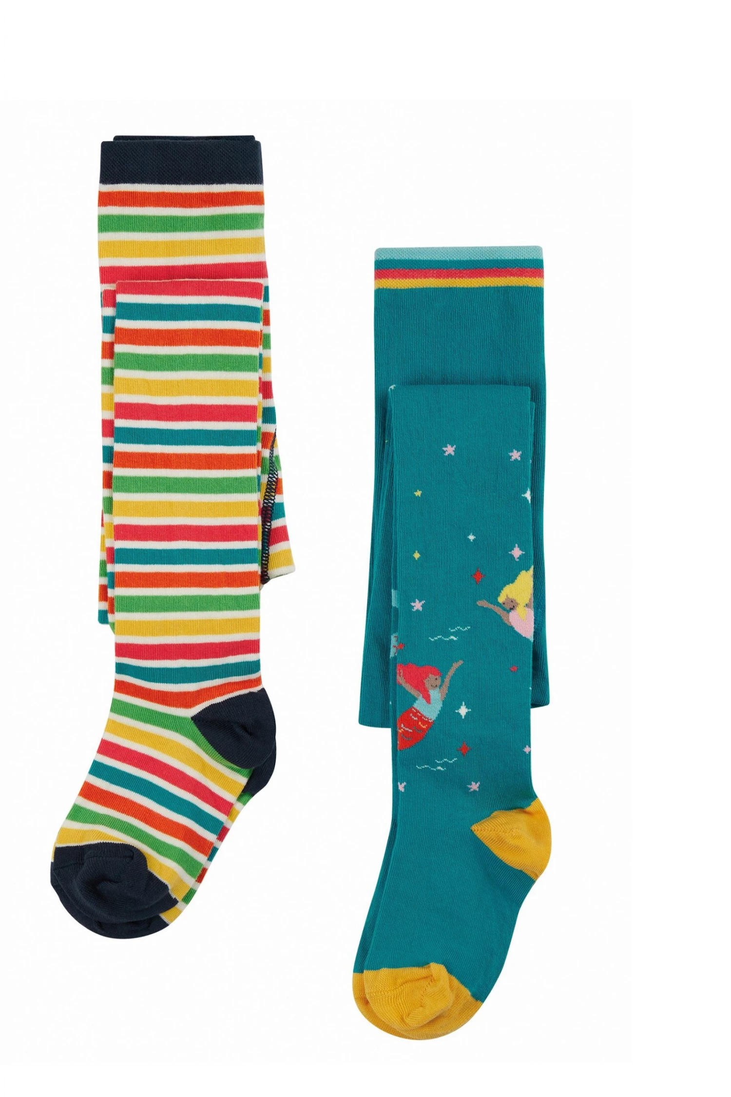 Rainbows and Mermaids! Two pairs of tights perfect for cooler Summer days. Featuring contrasting heels and toes. Made with 84% Organic Cotton, 12% Polyamide and 4% Elastane for extra stretch.