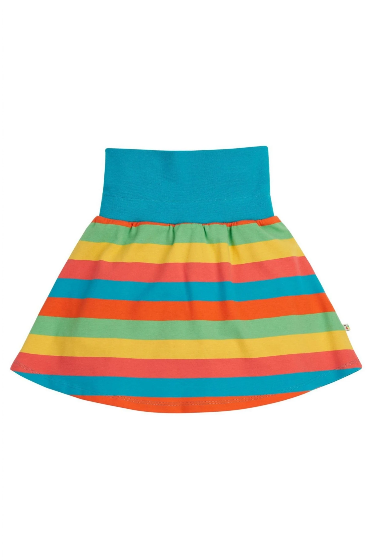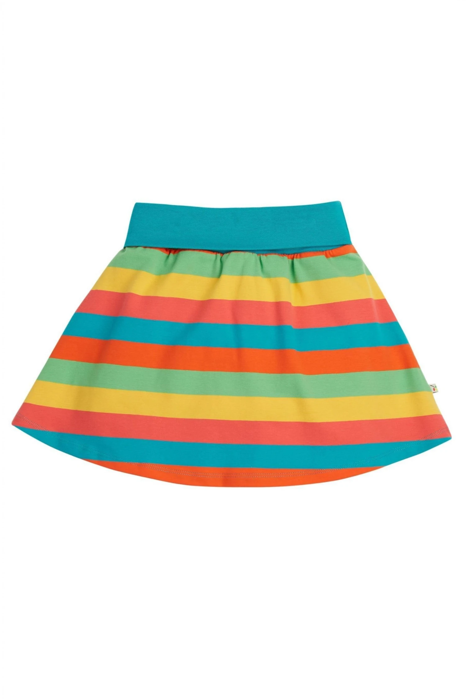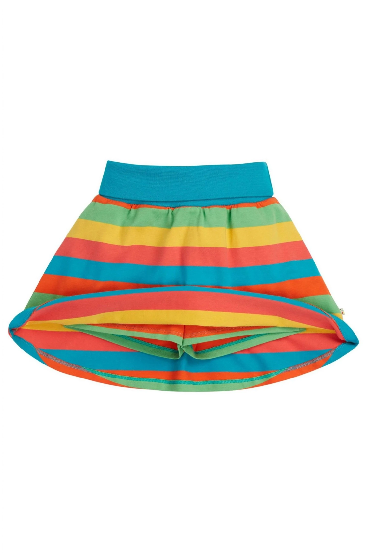 Skirt and shorts all in one! A comfy elasticated waistband and bright rainbow stripe print make this skort a Summer essential! Made from 100% Organic Cotton.