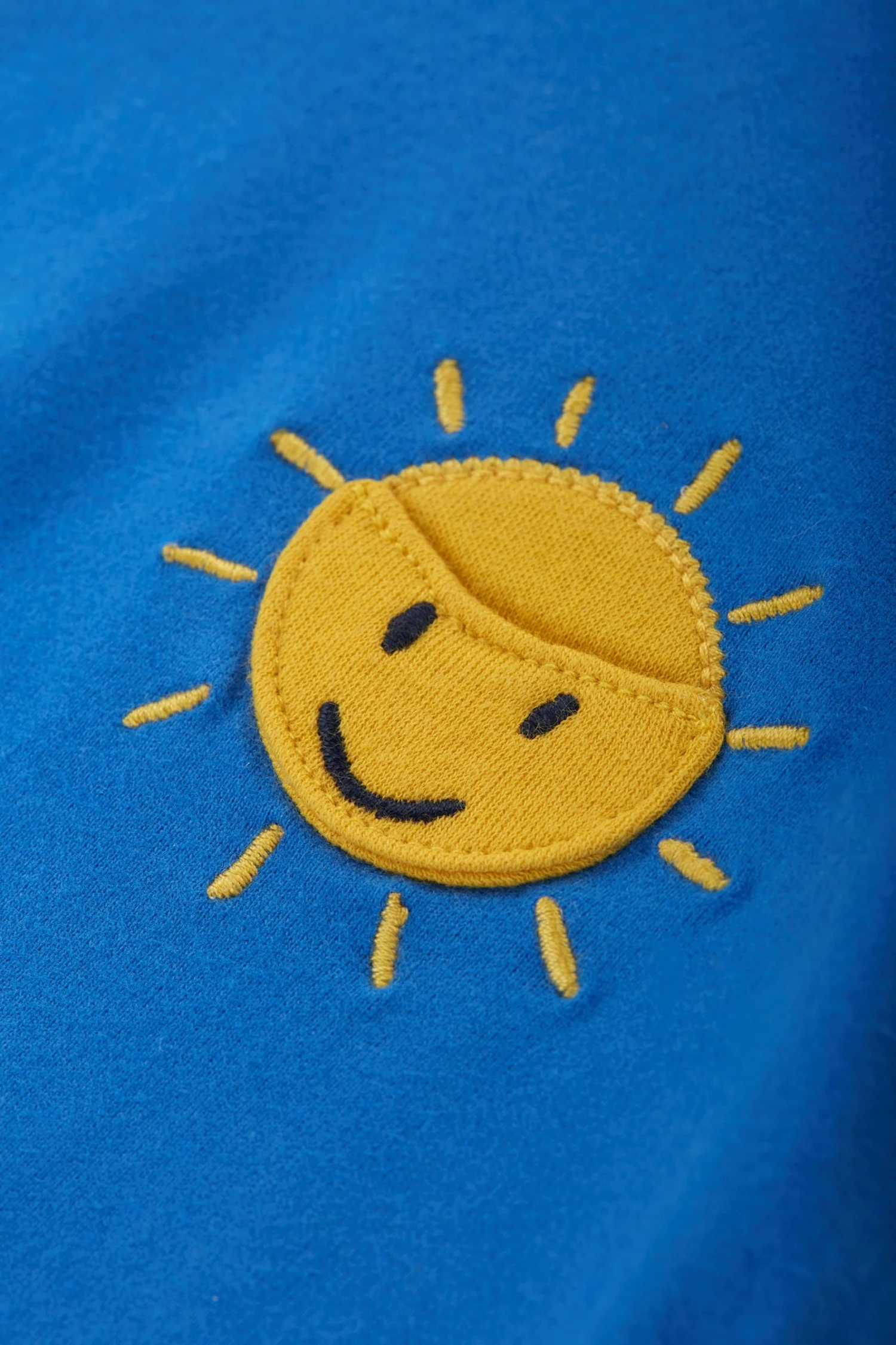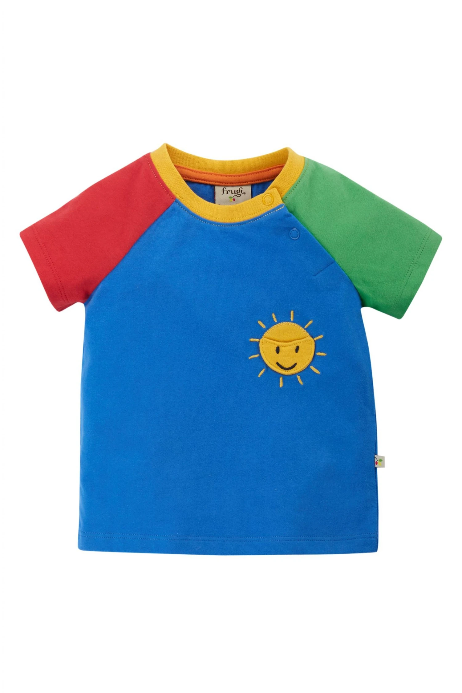 Mix and match with so many outfits! This organic cotton, short sleeved raglan top featured a happy sunshine applique and stretchy neck rib.