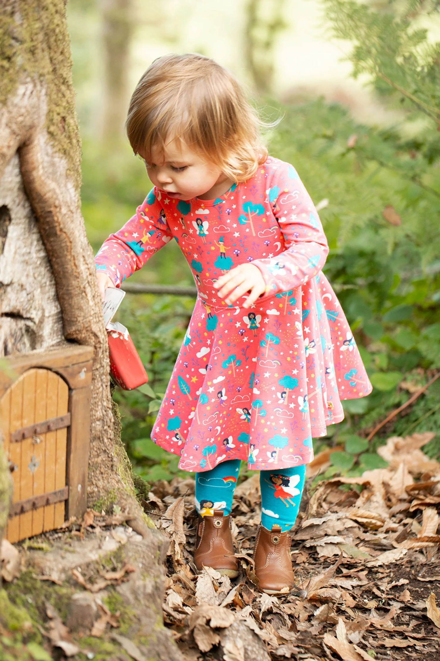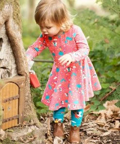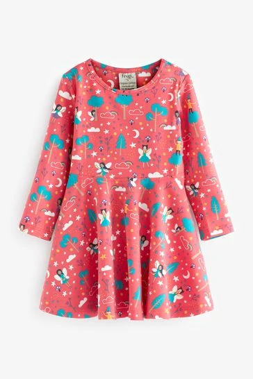 A Frugi favourite style; 360 full skirt gathered at the waist; perfect for twirling in! Printed with a magical Piskie design, with long sleeves for cooler days.