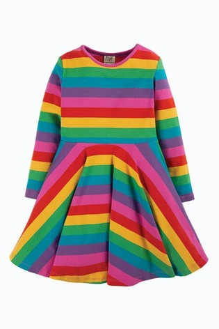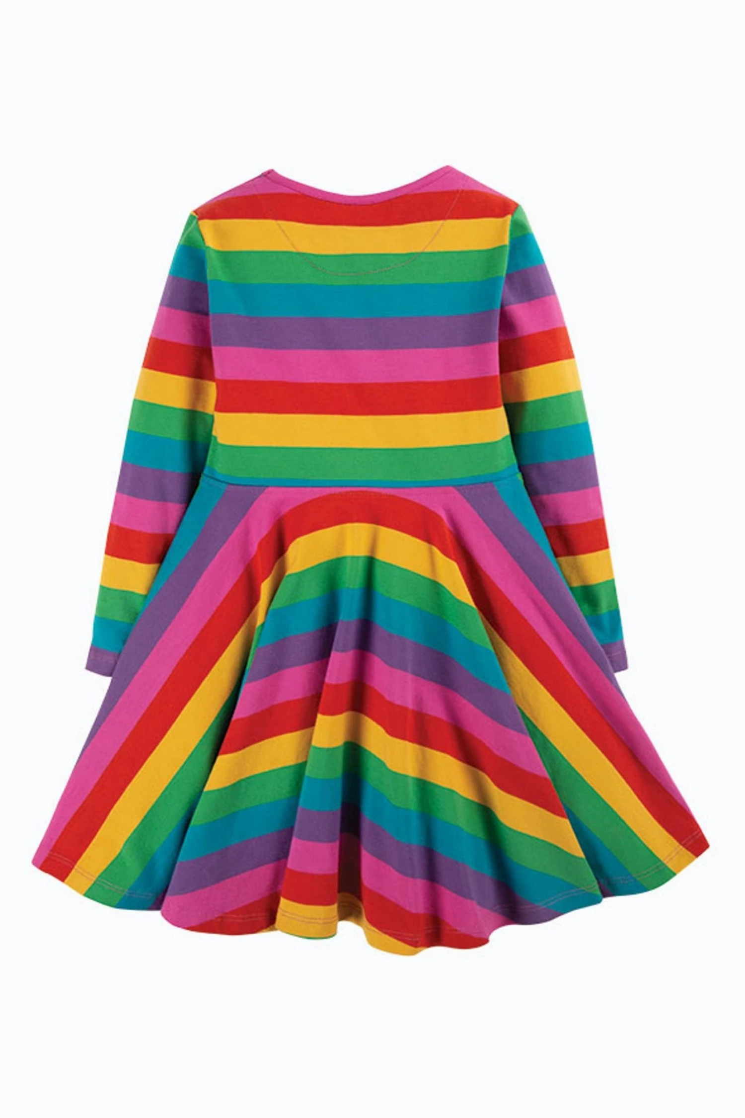 Sofia Skater Dress has had a Highlands & Islands spruce up and is now available in brand new designs for you and your little one to choose from! Perfect for little dancers, this long-sleeved dress has a full circular skirt for maximum twirling power. Foxglove Rainbow Stripe: This gorgeous design allows your little one to wear all the colours of the rainbow! Popper fastenings on the shoulder for easy peasy dressing. Great for layering over tights or leggings for a warm autumn outfit.