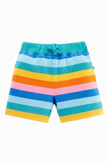 A Summer essential! Printed organic cotton brushback shorts with functional drawstring elasticated waistband and back patch pocket. Made from 100% Organic Cotton.