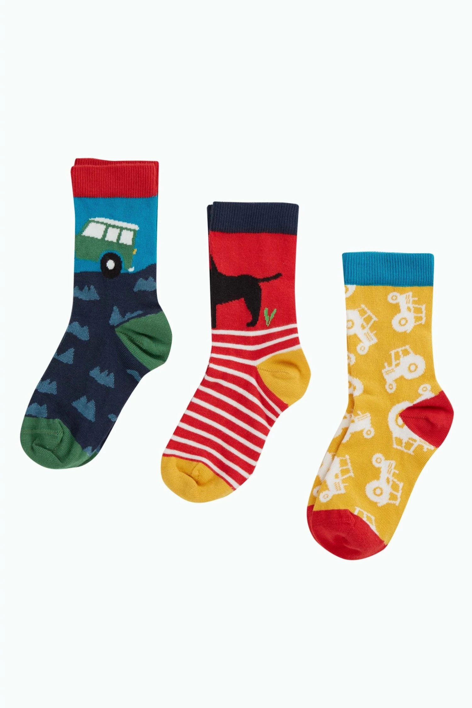 Organic cotton three pack of coordinating socks. Perfect for sensitive skin, these durable favourites will be your pick of the day! Each pair has a different character or design, all in a similar colourway.