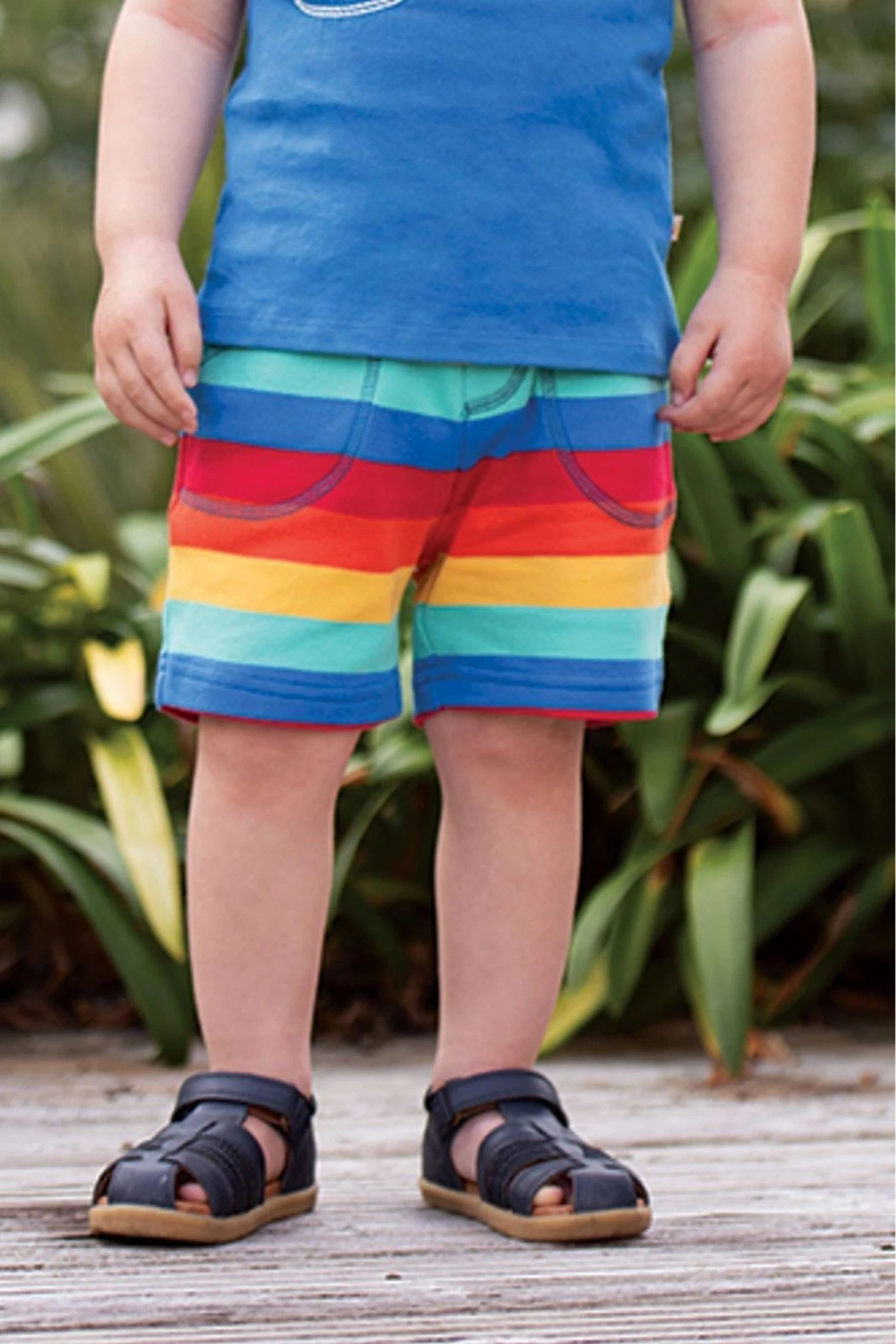 Comfy shorts – coming right up! Super soft and durable Organic cotton jersey shorts that are built to last and kind to skin! In a classic Frugi stripe, with a soft and stretchy waistband and proper size pockets – these will be first out of the drawer each morning!