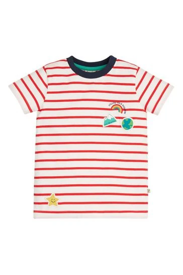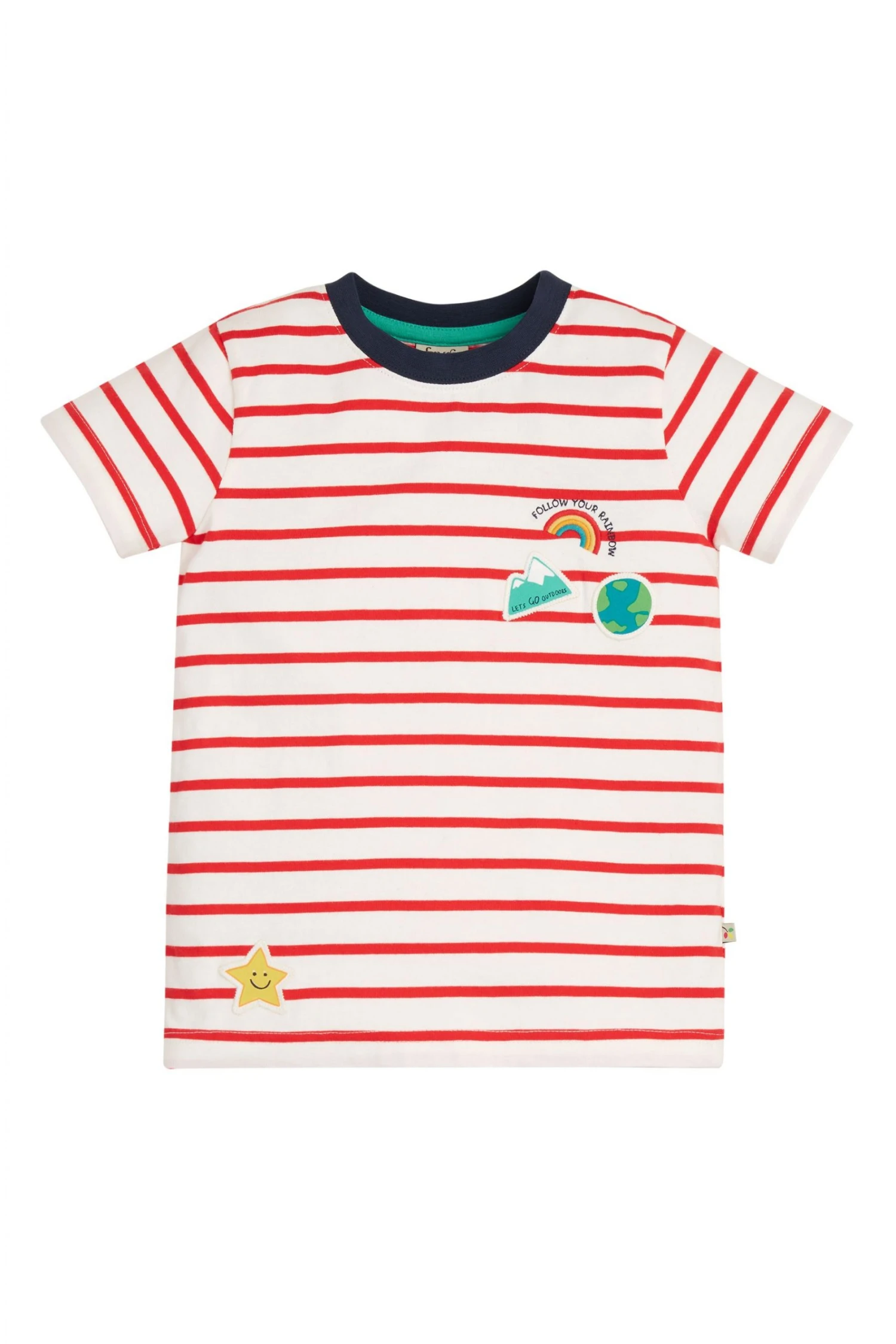 Follow your Rainbow! This fun, playful striped short sleeve T-shirt featured applique badge detailing. Made from Organic Cotton.