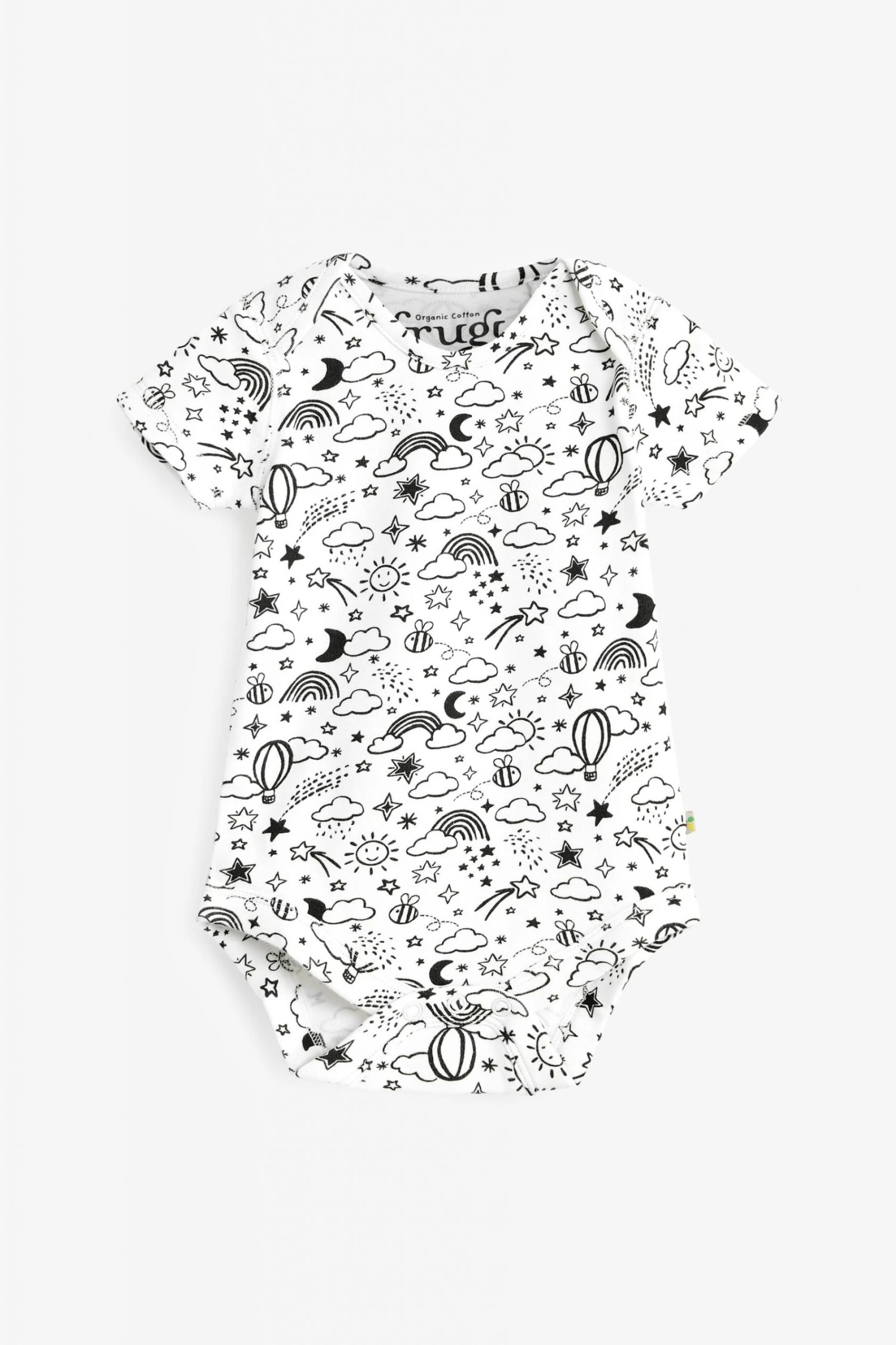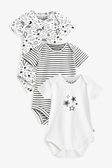 A great gift, this monochrome set of three bodies will mix and match with so many outfits. An envelope neck line and popper fastening between leg openings make for easy changing.