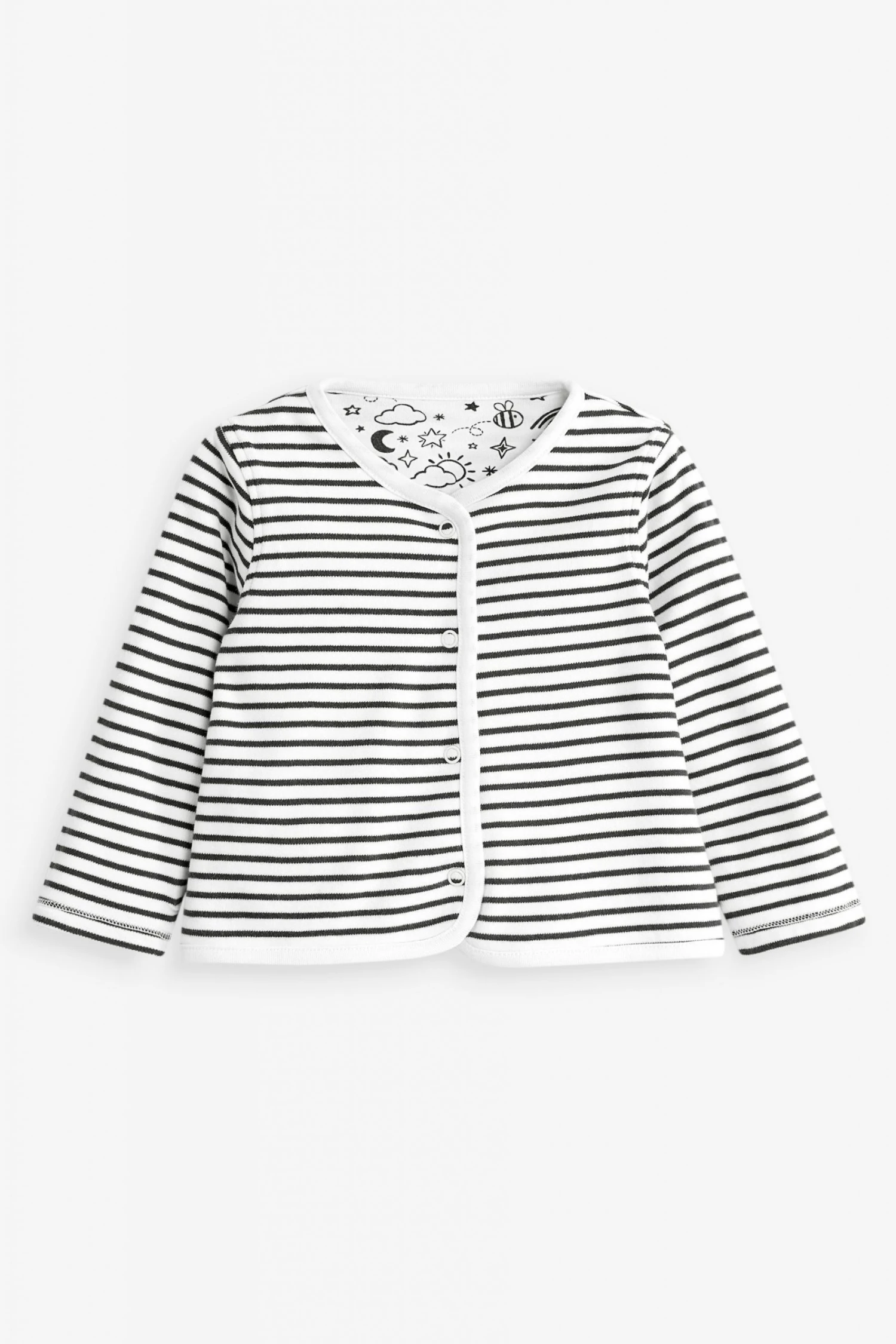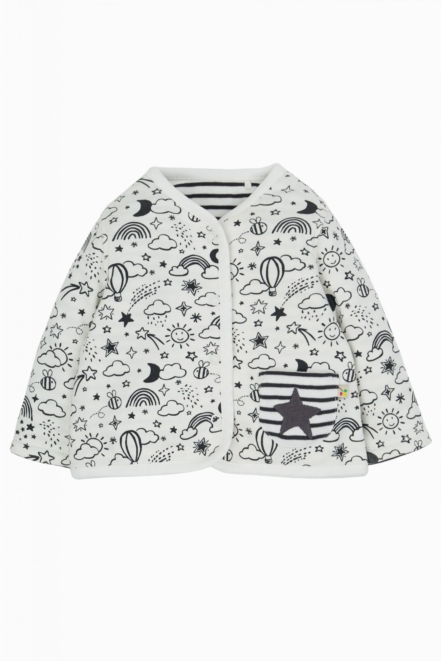 Two super cute jackets in one! This soft and snuggly organic cotton interlock reversible jacket has pocket detail and snap fastening.