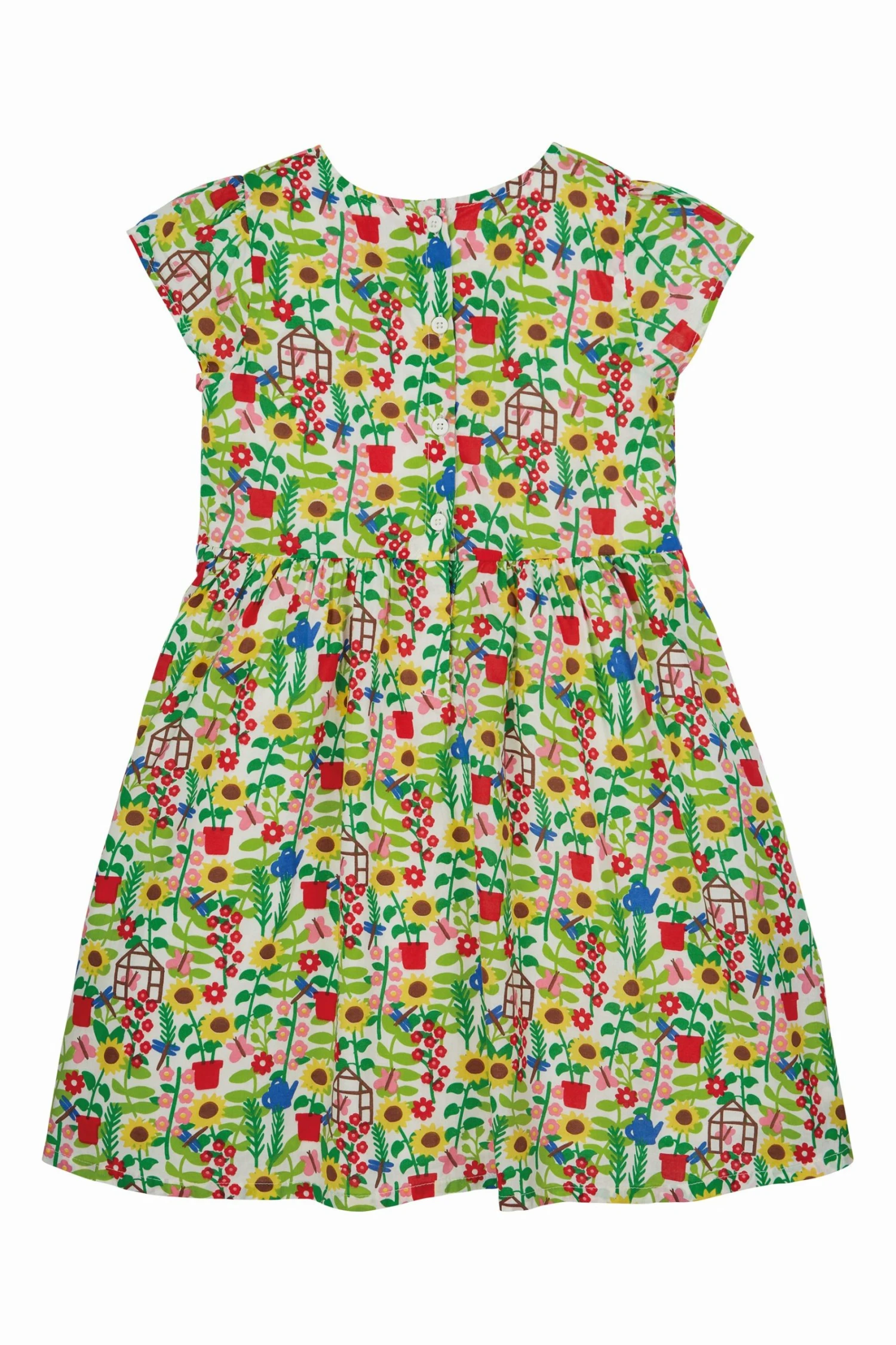 Made from Frugi’s signature soft and lightweight organic cotton cambric material. Features capped sleeves, button up back opening, soft gathered waistline and side seam pockets. Full organic cotton voile lined skirt and bodice panel.